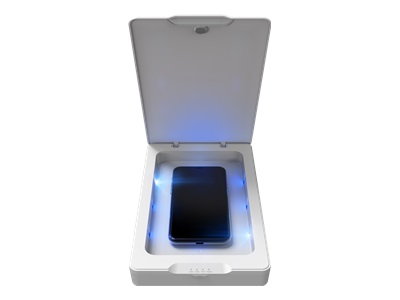 Détruit 99,99% des bactéries des surfaces de votre mobile- Cycle de stérilisation court 5 minutes (360°)- Compatible avec toutes les tailles de mobiles- Nettoie sans aucun produits chimiques (Technologie UV)-Cable USB-C inclus