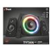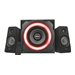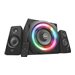 Une puissance de graves incroyable, un son de haute qualité et un design de jeu impressionnant, le tout réuni dans le système d'enceintes GXT 629 Tytan 2.1 RVB qui changera votre expérience de jeu à jamais. Que vous jouiez aux derniers jeux, écoutiez de la musique ou regardiez des films, vous apprécierez le tout avec la meilleure sélection de sonorités disponibles. Non satisfaite de produire des sons puissants, cette enceinte est également éclatante de couleurs! Vous avez le choix entre 7 couleurs fixes synchronisées avec le caisson de basses (rouge, vert, bleu, jaune, violet, bleu clair et blanc). Ou vous pouvez choisir une rotation de toutes les couleurs, une rotation lumineuse rythmée ou une synchronisation RVB avec le caisson de basses : les possibilités sont illimitées, à vous de décider!