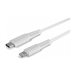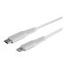 Le câble USB Type-C vers Lightning est conçu pour connecter les appareils Apple tels que les iPhones, iPads et iPods à un ordinateur ou un chargeur. Ce câble réversible permet de charger et de synchroniser des données. Il est également certifié MFi pour une compatibilité maximale. Le câble permet la recharge rapide des appareils Apple lorsqu'il est utilisé avec un chargeur USB Type-C Power Delivery.