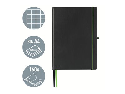 Cahier de notes - relié - A4 (210 x 297 mm) - 80 feuilles - papier ivoire - quadrillé - couverture noire