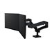 L'Ergotron LX Pro offre un design modulaire qui convient à la création d'un poste de travail côte à côte pour deux écrans LCD jusqu'à 27 pouces. Fabriqué en aluminium de haute qualité, ce kit de montage est robuste et léger, assurant la durabilité sans compromettre l'esthétique. Grâce à la gestion intégrée des câbles, l'installation reste ordonnée et organisée, réduisant ainsi l'encombrement sur la surface du bureau.Doté d'un système à deux bras, l'Ergotron LX Pro permet des ajustements, notamment une inclinaison de 85 degrés, un panoramique complet de 360 degrés et une rotation de 360 degrés. De plus, il offre une élévation de 33 cm, permettant aux utilisateurs de personnaliser leur expérience visuelle sans effort. Le support est conçu pour être monté sur un bureau, ce qui facilite l'installation tout en supportant une charge maximale de 20 kg.