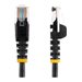 Ce câble patch Cat5e assure des connexions réseau fiables, garantissant ainsi la capacité nécessaire à vos applications Ethernet exigeantes.Recherchez la longueur et la couleur dont vous avez besoinCe câble réseau noir de 7 mètres est idéal pour les conduits et les goulottes de câbles. Il est destiné aux applications longue distance, par exemple d'un hub à un jack mural le long d'un montant ou à travers le bureau.Pour des installations réseau simplifiées, nos câbles Cat5e sont disponibles dans une grande variété de longueurs et de couleurs. Vous disposez ainsi toujours de la longueur de câble dont vous avez besoin et pouvez appliquer un code couleur à vos branchements pour une installation mieux organisée.Les connecteurs de câble RJ45 sans crochet assurent la protection de vos connexions réseauPour un câblage sans heurts, ce câble durable est doté de connecteurs sans crochet qui protègent les connecteurs de câble RJ45 des déchirures et des ruptures pendant l'installation.Il est également équipé de capuchons destinés à atténuer la tension en protégeant les extrémités du connecteur RJ45 des torsions excessives. Ceci réduit le risque d'endommager le câble et d'affecter les performances et la connectivité réseau.100 % cuivre pour une valeur exceptionnelleBénéficiez d'un rapport qualité-prix optimal en investissant dans nos câbles Ethernet Cat5e fabriqués à partir des meilleurs conducteurs en cuivre. Conçus avec précision et minutieusement testés, ils contribuent au maintien d'un niveau acceptable de diaphonie (NEXT).Fil de 0,25 mm pour une connexion réseau hautes performancesAssurez la capacité nécessaire à vos applications Ethernet exigeantes, telles que Power-over-Ethernet et la diffusion vidéo en flux continu 4K ou 1080p, grâce à des câbles dotés d'un fil de cuivre de 0,25 mm .Les connecteurs dorés de 50 microns garantissent une conductivité maximaleVous pouvez compter sur nos connecteurs RJ45 pour vous fournir une conductivité optimale, tout en éliminant les pertes de signal dues à l'oxydation ou à la corrosion.Le modèle 45PAT7MBK bénéficie de la garantie à vie StarTech.com pour une fiabilité à toute épreuve.