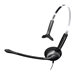 Micro-casque filaire monaural bande étroite Easy Disconnect, optimisé pour les téléphones fixes. Cet appareil robuste et fiable est le choix idéal pour les centres de contact et autres bureaux qui requièrent clarté audio et confort prolongé.