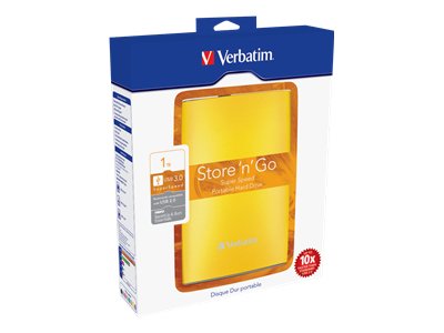 Disque dur externe 1 To - 2.5" : SuperSpeed USB, 5400 tours/min, Jaune ensoleillé, Garantie Vertabim 2 Ans.