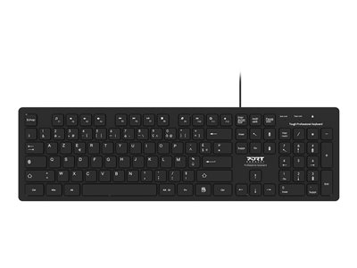Le clavier USB de bureau robuste PORT Connect dispose de 104 touches à membrane confortables et précises (disposition AZERTY) et est parfait pour les professionnels recherchant un modèle robuste et durable. Profitez d'une expérience fluide et réactive grâce aux 12 raccourcis multimédia et aux indicateurs LED pour le verrouillage des chiffres, des majuscules et du défilement. Compatible avec Windows, Mac OS et Chrome OS, il suffit de connecter son câble de 1,5 m via USB-A ou USB-C à votre ordinateur pour commencer à travailler. Aucun pilote n'est nécessaire grâce à son installation Plug & Play.