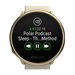 Fonctionnalités | | HRmax, zones HR, alerte d'inactivité, suivi continu du rythme cardiaque, Serene (exercice de respiration), contrôle de lecture de la musique, information météo, mesure de la récupération de la recharge nocturne, Guide de formation FitSpark, technologie de fusion de capteurs Polar Precision Prime