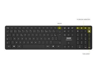 Le clavier Bluetooth de PORT Connect Office dispose de 109 touches confortables (disposition AZERTY) et est parfait pour les utilisateurs à la recherche d'un clavier ultra fin et élégant. Grâce à la technologie sans fil Bluetooth, ce clavier peut connecter jusqu'à 4 appareils simultanément avec une portée allant jusqu'à 10 mètres. Son interrupteur marche/arrêt combiné au mode de veille automatique augmente la durée de vie de la batterie jusqu'à 6 mois. Profitez d'une expérience fluide et réactive grâce à son design haut de gamme et à ses indicateurs LED pour le verrouillage des chiffres, des majuscules et du défilement. Compatible avec les ordinateurs portables et de bureau Windows, il suffit de le connecter à votre appareil pour commencer à travailler.