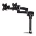 Le bras articulé double ARMDUAL vous permet de monter deux écrans sur votre bureau ou votre table, avec réglage de la longueur, de l'inclinaison, de la rotation, du pivotement, de l'angle latéral et de la hauteur.Ce bras d'écran pour bureau offre une grande amplitude de mouvement sur plusieurs axes, ce qui vous permet de placer vos écrans côte à côte, à distance, dos à dos ou dans toute autre disposition. Ce bras double prend également en charge la rotation de l'affichage du mode paysage au mode portrait pour chaque écran, ce qui permet d'afficher des pages ou des blocs de codes plus longs sans devoir les faire défiler.En montant vos écrans sur un bras pour deux écrans qui les place au-dessus de la surface du bureau, vous pouvez facilement ajuster leur hauteur, position et angles de vue de façon à créer un environnement de travail ergonomique, tout en libérant un espace de travail précieux sur votre bureau.Le bras double pour bureau, qui accepte des écrans de 12 à 24 pouces jusqu'à un poids maximum de 13,6 kg par bras, supporte vos écrans facilement et comporte un système de gestion de câbles intégré pour maintenir votre espace rangé. Pour une flexibilité d'installation accrue, le matériel de montage inclus peut être soit fixé sur le côté de votre bureau ou de votre table, soit monté au travers d'un œillet, constituant ainsi une solution de montage à deux écrans polyvalente.Bénéficie de la garantie StarTech.com de 2 ans et de l'assistance technique à vie gratuite.