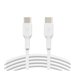 Le Câble Belkin BOOST?CHARGE USB-C vers USB-C vous permet de synchroniser vos photos, votre musique et vos données avec votre ordinateur à des vitesses allant jusqu'à 480 Mbps. Le Belkin CAB003 prend également en charge jusqu'à 3 A de puissance de sortie pour charger vos appareils USB-C.