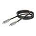 Connectez-vous à des appareils compatibles USB4, à l'aide de ce câble USB-C certifié par l'USB-IFCe câble USB4 de 1 m se connecte à des appareils compatibles USB Type-C (USB 3.2), Thunderbolt 4/3 et PCIe, offrant jusqu'à 40 Gbps, une vidéo 4K/8K et une charge de 100 W.[HTMLLINEBREAK]Établissez des Connexions Rapides et Stables pour l'Alimentation et les DonnéesCe câble USB4 Type-C est certifié USB-IF pour garantir une compatibilité USB-C. Il assure des débits de transfert constants et une sortie PD allant jusqu'à 100 W. Il est idéal pour un transfert de données à 40 Gbps vers des périphériques de stockage externes compatibles USB-C ou comme connexion unique entre une station d'accueil USB-C et un ordinateur portable.Ce câble a subi des tests rigoureux de conformité USB-IF pour répondre aux spécifications USB4. Cela inclut des normes électriques et mécaniques qui garantissent un câble fiable et de haute qualité pour les appareils USB-C.[HTMLLINEBREAK]Profitez de la Vidéo 8K avec le Mode Alt DisplayPort 1.4Le câble USB4 prend en charge des vidéos allant jusqu'à 8K 120Hz ou 4K 240Hz via le mode Alt DisplayPort 1.4 avec DSC, HDR et HBR3, et est compatible avec des résolutions doubles en 4K 60Hz et inférieures.[HTMLLINEBREAK]Alimentez un Ordinateur Portable USB-CAlimentez et chargez un ordinateur portable USB-C, tel que l'Apple MacBook, le Lenovo ThinkPad ou le Microsoft Surface, avec une sortie allant jusqu'à 100 W via l'USB Power Delivery 3.0. Connectez le câble USB4 de l'ordinateur portable à un chargeur mural USB-C ou à une station d'accueil.