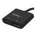 Cet adaptateur USB-C vers DisplayPort vous permet de connecter votre ordinateur portable ou MacBook avec un port USB Type-C à un écran DisplayPort. L''adaptateur vidéo est doté de la fonctionnalité USB Power Delivery, qui vous permet d''alimenter votre ordinateur portable lorsque vous diffusez de la vidéo sur un écran DisplayPort.L''USB Type-C est une norme de connectivité universelle qui associe toutes vos fonctionnalités indispensables en un port dynamique. Cet adaptateur fonctionne avec les appareils USB-C qui passent un signal vidéo DisplayPort, comme votre MacBook et Chromebook Pixel . Il est également compatible avec les ports Thunderbolt 3.Recharge votre ordinateur portableContrairement à certains adaptateurs vidéo utilisant un des ports USB-C de votre ordinateur portable pour diffuser des vidéos, cet adaptateur vidéo est doté d'un port de charge USB-C prenant en charge la fonctionnalité USB Power Delivery jusqu'à 60 watts. Cela signifie que vous pouvez recharger votre ordinateur portable et diffuser des vidéos via un seul port, en connectant simplement l''adaptateur d''alimentation de l''ordinateur au port USB-C de l'adaptateur. C''est la solution idéale pour les ordinateurs portables qui possèdent un nombre limité de ports USB-C.Améliorez la portabilitéCet adaptateur vidéo USB Type-C optimise la portabilité grâce à son design léger et à faible encombrement. C''est l''accessoire idéal à transporter avec votre MacBook ou autre ordinateur USB-C. Il se glissera facilement dans la sacoche ou la mallette de transport de votre ordinateur portable. Son design ultra portable rend cet adaptateur idéal pour les applications BYOD (Apportez votre propre appareil) au bureau.Connectez-vous facilementCet adaptateur vous permet d''utiliser le port USB Type-C polyvalent de votre appareil portable. L''USB Type-C est un connecteur réversible. Peu importe le sens dans lequel vous le raccordez, l''adaptateur se connectera toujours. Oubliez les difficultés gênantes rencontrées avec votre appareil lorsque vous réalisez une présentation ou partagez des informations.Maintenez une qualité d''image remarquableAvec une résolution quatre fois supérieure à la haute définition 1080p, vous serez impressionné par la qualité d''image d''un moniteur ou d''une télévision 4K. L''adaptateur vous permet d''exploiter les capacités vidéo de votre connexion USB Type-C pour bénéficier de la qualité remarquable de l''Ultra HD sur votre écran 4K. La résolution 4K vous fournit un espace supplémentaire à l''écran pour simplifier les tâches détaillées, par exemple l''édition de vidéos et l''affichage de grandes feuilles de calcul.Même si vous n''utilisez pas la 4K, l''adaptateur prend en charge le 1080p haute résolution et des résolutions inférieures, ce qui vous offre une grande tranquillité d''esprit : vous savez que cet adaptateur fonctionnera avec tous les écrans vidéo DP auxquels vous devrez vous connecter.Le modèle CDP2DPUCP bénéficie de la garantie StarTech.com de 3 ans et de l''assistance technique à vie gratuite.