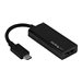 Cet adaptateur USB-C vers HDMI vous permet de transmettre des signaux audio et vidéo HDMI à partir d'un appareil USB Type-C , comme les MacBook compatible USB-C, prenant en charge des résolutions Ultra HD 4K à 60 Hz. Cet adaptateur fonctionne avec les appareils USB-C qui transmettent un signal vidéo DisplayPort et est compatible avec les ports Thunderbolt 3.Résolution Ultra HD 4K à 60 HzL''adaptateur vous permet d''exploiter les capacités vidéo de votre connexion USB Type-C, pour bénéficier de la qualité remarquable de l''UHD sur votre écran 4K 60 Hz. Vous pouvez ainsi accomplir facilement multiples tâches simultanément sur les applications les plus exigeantes en ressources. Avec cet adaptateur, vous pouvez obtenir une résolution de sortie pouvant atteindre jusqu''à 3840 x 2160p à 60 Hz, parfaite pour réaliser des tâches haute résolution comme regarder des vidéos 4K. De plus, l''adaptateur est rétrocompatible avec les écrans 1080p, ce qui en fait un accessoire idéal pour votre domicile, bureau ou toute autre application d''espace de travail.Portabilité suprêmeCet adaptateur vidéo USB Type-C est facile à transporter, grâce à son design compact et léger. L''adaptateur est l''accessoire parfait pour votre nouvel appareil USB-C slim, se glissant facilement dans votre sac ou sacoche d''ordinateur, parfait pour les applications BYOD (Apportez votre propre appareil) au bureau.Connexion simple par USB Type-CCet adaptateur vous permet d''utiliser les ports USB Type-C polyvalents de votre appareil portable. Le connecteur USB Type-C est réversible, vous n''avez donc pas besoin de faire attention au sens. Vous brancherez toujours le connecteur de manière adéquate, vous épargnant le tracas et la distraction d''essayer plusieurs fois de brancher votre ordinateur portable à un écran ou vidéoprojecteur pendant une présentation ou une discussion de groupe.Le modèle CDP2HD4K60 bénéficie de la garantie StarTech.com de 3 ans et de l''assistance technique à vie gratuite.Remarque : Votre appareil compatible USB-C doit prendre en charge la vidéo pour fonctionner avec cet adaptateur.