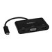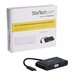 Cet adaptateur multifonction universel vous permet d'étendre la connectivité de votre ordinateur portable ou MacBook via USB-C . Vous pouvez connecter votre ordinateur portable à un écran VGA, tout en connectant également un appareil USB 3.0 traditionnel. De plus, lorsqu'il est couplé avec l'adaptateur d'alimentation de votre ordinateur portable, l'adaptateur multiport fournit l'alimentation nécessaire pour charger la batterie de votre ordinateur portable.Design solide et facile à transporterCet adaptateur USB-C compact deviendra un accessoire indispensable pour votre ordinateur portable, MacBook, ou Chromebook équipé de la technologie USB-C. Il est extrêmement portable grâce à son design léger et compact, et se glisse facilement dans la sacoche ou la housse de transport de votre ordinateur portable.La solidité de cet adaptateur multifonction répond aux demandes exigeantes des voyageurs. Aucune crainte à avoir : votre adaptateur est toujours prêt à être utilisé.Étendez vos capacités d'affichageSi vous disposez d'un écran ou d'un vidéoprojecteur VGA, vous pouvez le connecter à cet adaptateur afin de créer un poste de travail à deux écrans : celui de votre ordinateur portable et l'écran externe supplémentaire ou le vidéoprojecteur. Avec un écran supplémentaire, vous êtes plus efficace au travail et pouvez gérer plusieurs tâches plus efficacement.Pour effectuer une présentation en salle de conférence ou si vous cherchez à ajouter un écran à votre ordinateur portable, cet adaptateur est l'accessoire qu'il vous faut.Chargez votre ordinateur portableCet adaptateur polyvalent prend en charge la spécification USB Power Delivery, ce qui vous permet d'alimenter et de charger votre ordinateur portable via son port USB Type-C . Connectez simplement l'adaptateur au port USB-C de votre ordinateur portable, puis raccordez l'adaptateur d'alimentation de votre ordinateur à l'adaptateur multifonction.En utilisant un seul adaptateur d'alimentation pour alimenter votre ordinateur portable et l'adaptateur, vous pouvez voyager plus léger et en toute tranquillité. De plus, vous pouvez réduire l'enchevêtrement de câbles dans votre espace de travail.Prise en charge universelleContrairement à certains adaptateurs propriétaires conçus pour fonctionner uniquement avec des modèles d'ordinateurs portables spécifiques, cet adaptateur universel est compatible avec plusieurs marques. Tout ce dont vous avez besoin, c'est d'un port USB-C prenant en charge le DP alt mode et la spécification USB Power Delivery, et votre installation est rapidement opérationnelle. Grâce à la prise en charge universelle, vous pouvez utiliser cet adaptateur avec différents modèles d'ordinateurs portables, courants et futurs. En outre, il est compatible avec les ports Thunderbolt 3.Fonctionne avec les anciens appareils USBCet adaptateur multifonction USB-C vers VGA dispose d'un port USB 3.0 rétrocompatible avec les anciens appareils USB. Il est donc parfait pour les transferts de données, la synchronisation ou le chargement de votre appareil mobile.Le modèle CDP2VGAUACP bénéficie de la garantie StarTech.com de 2 ans et de l'assistance technique à vie gratuite.