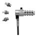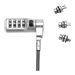 Parfait pour les sociétés qui travaillent avec différents appareils. Grâce au cadenas de sécurité à combinaison avec tête interchangeable (T-Lock, Wedge et Nano), votre cadenas correspond à tous types d'appareils équipés d'un port antivol. Simple, pratique et efficace. Ce verrou est utilisé dans un système de verrous supérieur qui permet l'accès aux utilisateurs et à l'administrateur du système grâce à un code prédéfini. Ce code prédéfini est programmé dans le verrou avant l'envoi pour que l'utilisateur puisse travailler immédiatement sans avoir à définir une nouvelle combinaison.Le code de combinaison prédéfini est fixe est ne peut pas être modifié. Chaque système est conçu et construit individuellement. Chaque verrou possède un numéro unique gravé au laser et chacun de ces numéros gravés au laser correspond à un code de combinaison spécifique.