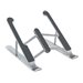 Trouvez la meilleure position pour votre appareil. Ce support pour tablettes et ordinateurs portables propose sept niveaux de réglage en hauteur. Il vous aide à corriger votre posture et vous permet ainsi de travailler toute la journée sans problème, où que vous soyez.Compatibilité universelle avec des appareils de fabrications et de tailles différentes. Le support est composé d'aluminium de haute qualité et dispose de propriétés de réduction de la chaleur, afin d'éviter la surchauffe de l'appareil. Les pads en silicone veillent à ce que l'appareil ne glisse pas du support et ne soit pas rayé. Ce support est facile à plier, à ranger et à transporter.