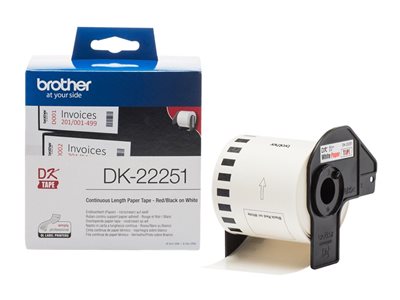 Ce ruban de papier continu DK-22251 Brother original garantit une impression précise de vos étiquettes.Idéal pour l'étiquetage des dossiers, des fichiers et de tout autre document au bureau ou à la maison, ce rouleau noir et rouge sur blanc, facile à installer, vous permet de choisir la longueur de vos étiquettes pour un maximum de polyvalence.Grâce à la technologie avancée de Brother, ce ruban de papier continu DK-22251 spécial imprime non seulement en noir mais également en rouge.Avec le rouleau DK-22251, vos étiquettes resteront bien en place et seront lisibles plus longtemps.