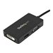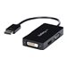 Le convertisseur DisplayPort vers VGA, DVI ou HDMI DP2VGDVHD offre une solution compacte 3-en-1 permettant de connecter votre PC, votre ordinateur portable ou Ultrabook&trade avec DP à un écran VGA, DVI ou HDMI.Compatible avec presque tous les écrans, téléviseurs ou vidéoprojecteurs, ce convertisseur polyvalent constitue une solution plug-and-play idéale pour les déplacements ou les applications professionnelles BYOD (Apportez votre propre appareil) au bureau. En vous proposant trois des interfaces les plus courantes, il vous permet de vous connecter à appareil disponible dès l'entrée dans une salle de conférence et ce, même si vous ne connaissez pas les ports disponibles.Le convertisseur prend en charge des résolutions pouvant atteindre 1920 x 1200/1080p ce qui permet un branchement sans encombre depuis votre ordinateur avec DisplayPort. Vous pouvez ainsi convertir une source vidéo DisplayPort en VGA, HDMI ou DVI sans compromis sur la qualité vidéo.Compact et léger, le convertisseur DisplayPort se garde facilement sous la main sans occuper trop de place dans le sac de votre ordinateur portable.Le modèle DP2VGDVHD bénéficie de la garantie StarTech.com de 2 ans et de l'assistance technique à vie gratuite.