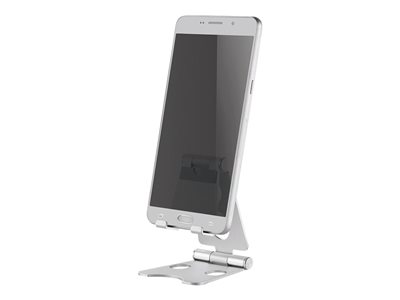 Le Neomounts DS10-150SL1 est un support pliable pour smartphones. L'option intelligente d'inclinaison (270°) permet au support de se positionner à l'angle de vue idéal. Le support de téléphone est idéal pour les appels vidéo mains libres, regarder un film ou jouer à un jeu.Grâce à la configuration ouverte, le port de charge reste accessible et les câbles de charge peuvent être acheminés vers l'arrière du support. La conception légère et pliable rend le support idéal pour l'emporter partout avec vous. Les patins en silicone antidérapants et la butée de rebord de sécurité assurent un positionnement stable de votre téléphone. Une pochette de voyage astucieuse est incluse avec le support.