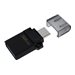 Les clés DataTraveler microDuo de Kingston apportent une capacité de stockage supplémentaire dans un format compact très pratique pour les tablettes et smartphones supportant la fonction USB OTG (On-The-Go). La norme USB OTG permet de connecter directement des dispositifs mobiles à des accessoires USB compatibles.Les clés DataTraveler microDuo permettent d'utiliser les ports microUSB, souvent employés pour charger les appareils, comme ports d'expansion et d'offrir ainsi juqu'à 128Go de mémoire supplémentaire. Idéale pour emporter des fichiers volumineux pendant vos déplacements, la clé USB DTDUO3G2 offre une fonctionnalité plug-and-play pour les smartphones et tablettes Android dépourvus de port microSD. Et pour un prix par Go inférieur au stockage supplémentaire intégré des dispositifs mobiles.Sur les smartphones et tablettes capables de prendre des vidéos 4k et des photos à haute résolution, l'espace de stockage est de plus en plus rapidement saturé. Les clés DTDUO3G2 permettent de libérer de l'espace en déplaçant des fichiers, des photos, des vidéos et plus encore, sans connexion à un PC, dans le cadre d'une réorganisation ou d'une sauvegarde du contenu. Vous pouvez aussi partager des fichiers volumineux entre plusieurs dispositifs mobiles, encore plus facilement qu'avec des services cloud en ligne. Et vous n'avez pas besoin de câble entre votre dispositif et le PC.Les clés DT microDuo sont petites, légères et faciles à garder sur vous en toutes circonstances. Leur élégant design s'accorde agréablement à tous les dispositifs mobiles. Le système de fermeture à capuchon protège le connecteur microUSB.