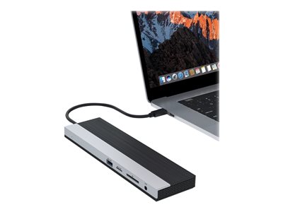 Station d'accueil USB-C : 2 x SuperSpeed USB 3.0, 1x USB-C Power Delivery 100W, 2x USB 2.0, 1x HDMI, 1x Gigabit Ethernet, 1x DisplayPort, 1x VGA, 1x mini jack stéréo 3.5 mm, Jusqu'à 4K@30 Hz
