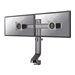Le support de bureau Neomounts, modèle FPMA-D860DBLACK est un support de bureau avec inclinaison, rotation et pivot pour deux écrans plats jusqu'à 27". Ce support est un excellent choix pour économiser de l'espace sur le bureau.La technologie de Neomounts, inclinaison de 20°, rotation de 360° et pivot de 20°, permet au montage de changer l'angle de vue pour profiter pleinement des capacités de l'écran plat. La hauteur du support est réglable manuellement de 24 à 47 centimètres. La profondeur de ce support est de 5 cm.Le modèle Neomounts FPMA-D860DBLACK possède deux points de flexion et est adapté pour les écrans jusqu'à 27" (69 cm). La capacité de poids de ce produit est de 7 kg chaque écran. Ce support de bureau est adapté pour les écrans qui répondent à la norme VESA 75 x 75 et 100 x 100 mm.Des maux de dos et de cou peuvent être évités en utilisant un support ergonomique. Idéal pour une utilisation dans les bureaux et sur les comptoirs ou dans une zone de réception.