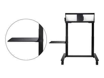 L'étagère TB01 offre une surface de rangement pratique pour les ordinateurs portables et est facilement réglable en hauteur. Elle se fixe aux montants du chariot motorisé EST09 et a une charge maximale de 22 lb.