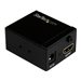 Cet amplificateur de signal HDMI vous permet d'augmenter la puissance de votre signal vidéo HDMI afin de pouvoir connecter un écran HDMI jusqu'à une distance de 35 m avec des câbles HDMI standard. Vous pouvez aligner l'amplificateur entre deux câbles HDMI, jusqu'à une longueur de 25 m à l'entrée vidéo, et jusqu'à une longueur de 10 m à la sortie vidéo.Installation discrèteAvec son format compact, cet amplificateur HDMI est facile à dissimuler pour une installation discrète. Aucun adaptateur d'alimentation externe n'est nécessaire pour faire fonctionner l'amplificateur de signal, et il inclut le matériel de montage pour faciliter l'installation. En prolongeant votre signal vidéo au moyen de câbles HDMI standard, l'amplificateur de signal représente une alternative économique aux systèmes d'extension HDMI plus coûteux, qui nécessitent l'installation d'une infrastructure de câblage CAT5 ou CAT6.Compatible avec plusieurs distancesL'amplificateur HDMI comporte un commutateur d'égalisation avec dix niveaux différents. Le commutateur d'égalisation vous permet d'ajuster l'amplification de votre signal HDMI en fonction de la distance de vos câbles pour que votre signal HDMI soit parfait, même à des distances jusqu'à 35 m. Cet amplificateur convient idéalement pour les salles de conférence, les bureaux ou les salles de classe qui peuvent nécessiter des distances variées selon la taille de la pièce.Maintient des signaux vidéo haute définitionLorsque le HDMI est prolongé sur de longues distances au moyen de câbles vidéo standard, les résolutions plus élevées peuvent ne pas être disponibles. Grâce à l'amplificateur de signal HDMI, vous avez l'assurance de pouvoir compter sur une résolution haute définition jusqu'à 1080p à 60 Hz.Le modèle HDBOOST bénéficie de la garantie StarTech.com de 2 ans et de l'assistance technique à vie gratuite.