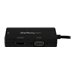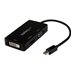 Cet adaptateur de voyage vous permet de connecter votre ordinateur portable ou votre Ultrabook compatible Mini DP à n'importe quel écran VGA ou HDMI .S''appuyant sur des tests rigoureux pour garantir la compatibilité, l''adaptateur Mini DisplayPort 3-en-1 est l''accessoire idéal pour tous vos appareils Microsoft Surface Pro équipés Mini DP.Connectez-vous à n'importe quel écran HDMI ou VGAPourquoi transporter plusieurs adaptateurs lorsqu'un seul suffirait ? Plus besoin de garder trois adaptateurs différents à portée de main ! L'adaptateur de voyage Mini DP a des sorties VGA, DVI et HDMI, ce qui vous permet de connecter la sortie Mini DP de votre ordinateur portable à tout écran moderne de salle de conférence ou de classe. Une solution plug-and-play idéale pour les applications de bureau BYOD (apportez votre propre appareil).De plus, le convertisseur prend en charge des résolutions pouvant atteindre 1920 x 1200 ou 1080p. Vous pouvez donc convertir une source vidéo Mini DisplayPort en HDMI, VGA ou DVI sans compromettre la qualité vidéo.Tirez le maximum de la portabilitéL'adaptateur de voyage audio-vidéo maximise la portabilité grâce à sa conception compacte et légère. Sa conception pratique rend cet adaptateur aussi transportable que votre ordinateur portable. Il peut être facilement rangé dans votre sacoche ou votre étui de transport et évite de devoir emporter plus d'un adaptateur. Avec cet adaptateur, vous pouvez virtuellement vous rendre dans n'importe quelle salle de conférence et faire une excellente première impression par votre préparation. Vous n'aurez pas à vous sentir gêné de devoir fouiller dans votre sac à la recherche de la bonne connectique.Ce convertisseur 3 en 1 est compatible avec le port Intel Thunderbolt de votre ordinateur et peut être facilement installé sans logiciel ni pilote.Le modèle MDP2VGDVHD bénéficie de la garantie StarTech.com de 3 ans et de l'assistance technique à vie gratuite.