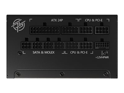 Détails sur les connecteurs de sortie | | 1 x alimentation ATX 24 broches 2 x alimentation EPS12V 8 broches avec section détachable de 4 broches ATX12V 1 x alimentation 12+4 broches PCI Express 5.0 6 x Alimentation PCI Express de 8 broches avec section détachable à 2 broches 12 x alimentation ATA série de 15 broches 5 x alimentation interne 4 plots