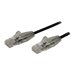 Ce câble CAT6 fin répond à toutes les spécifications de câble patch de catégorie 6 et fournit une connexion réseau Gigabit fiable dans les centres de données haute densité.Passage facile des câblesLa conception de ce câble de connexion CAT6 fin est 36 % plus fine que celle des câbles réseau standard pour une meilleure circulation de l''air et une meilleure dissipation de la chaleur dans les espaces restreints. Le câble est également plus flexible que les câbles Ethernet standard, ce qui facilite le passage des câbles dans les racks réseau encombrés.Ce câble est doté de connecteurs sans crochet qui protègent les connecteurs de câble RJ45 contre les déchirures et les ruptures pendant l''installation dans des espaces restreints.Protégez votre équipementCe câble patch CAT6 est testé conformément aux exigences de la norme ANSI/TIA 568 C.2 Catégorie 6, garantissant ainsi une connexion fiable à votre équipement réseau. Certifié conforme à la classification incendie LSZH (Low Smoke Zero Halogen), ce câble de connexion garantit une connexion sûre.Les connecteurs dorés de 50 microns du câble patch fournissent une conductivité optimale tout en éliminant les pertes de signal dues à l''oxydation ou à la corrosion.Construction de haute qualitéChaque câble CAT6 est fabriqué à partir des meilleurs conducteurs en cuivre et confectionné puis testé avec soin afin de maintenir la paradiaphonie (NEXT) à un niveau nettement inférieur aux limites acceptables. De plus, chaque câble est conçu avec un fil de cuivre de 0,08 mm pour garantir des performances optimales pour vos applications Ethernet exigeantes.Le modèle N6PAT150CMBKS bénéficie de la garantie à vie StarTech.com et de l''assistance technique à vie gratuite.