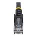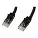 Le câble patch Cat6 N6PATC1MBK (1 m) respecte ou dépasse toutes les spécifications des câbles de catégorie 6 pour assurer une connexion fiable aux réseaux Gigabit. Il est équipé d'une fiche PVC noire durable qui permet de coder l'acheminement des câbles au besoin.Durable, ce câble patch Cat6 de qualité supérieure est fabriqué sans crochet, ce qui contribue à protéger les clips du connecteur RJ45 et à éviter qu'il se coince pendant l'installation. Parallèlement, son serre-câble moulé en PVC empêche les terminaisons du connecteur RJ45 de trop se plier et réduit, du même coup, les risques de dommages pouvant compromettre le bon fonctionnement du réseau.Fait uniquement de matériaux de la meilleure qualité, ce câble patch Cat6 propose un rendement fiable et bénéficie de notre garantie à vie.100 % cuivre, pour une qualité supérieureLes câbles Cat6 de StarTech.com sont fabriqués avec des conducteurs en cuivre de qualité supérieure. Alors que de nombreux fabricants proposent des câbles " meilleur marché ", avec une âme en aluminium plaqué cuivre, nous refusons tout compromis sur la qualité afin que vous tiriez la meilleure valeur et le meilleur rendement de votre câble réseau.Fil 24 AWGCe câble Cat6 est fait de fil de cuivre de calibre 24 pour prendre en charge une vaste gamme d'applications Ethernet comme Power over Ethernet (PoE). Etant donné que nous employons un fil de cuivre de qualité supérieure, nos câbles gèrent facilement la puissance nécessaire à ces types d'applications. En revanche, les câbles d'aluminium plaqué cuivre, de qualité inférieure, supportent mal la puissance exigée et ont tendance à chauffer, à endommager l'équipement et potentiellement, à provoquer des incendies.Connecteurs or 50 micronsCe câble patch Cat6 est équipé de connecteurs de qualité supérieure faits d'or à 50 microns, d'une conductivité optimale permettant d'éliminer la perte de signal due à l'oxydation ou la corrosion.