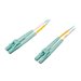 Tripp Lite présente ses nouveaux câbles OM4 Laser-Optimized Multimode Fiber (LOMMF) " Aqua ", pour une utilisation avec des applications Ethernet 40 Go./100 Go. Ces câbles en fibre optique 50/125 um, LC/LC de nouvelle technologie procurent quasiment trois fois plus de bande passante que la fibre multimode 62,5 um conventionnelle, avec des performances rivalisant avec celles d'un câble monomode, à un coût significativement réduit. Le câble LOMMF permet la transmission série 40 Go./100 Go. sur des distances étendues dans la fenêtre de longueur d'onde de 850 nm, où les lasers à bas coût Vertical Cavity Surface Emitting Lasers (VCSEL) autorisent une solution économique à bande passante élevée. LOMMF convient idéalement aux interconnexions LAN, SAN et parallèles à haut débit pour les têtes de réseaux, les sièges centraux et les centres de traitement de données.