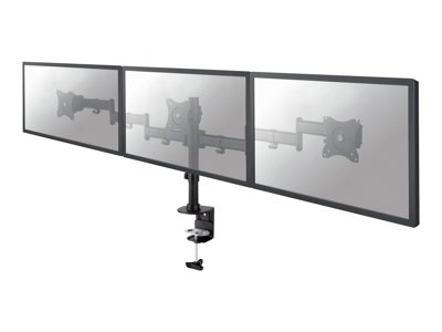 Le support de bureau Neomounts Select, modèle NM-D135D3BLACK, est un montage inclinable, pivotant et rotatif, pour 3 écrans plats jusqu'à 27" (69 cm). Ce support est un excellent choix pour économiser de l'espace sur les bureaux en l'installant à l'aide d'une pince de bureau ou œillet à monter.La technologie de Neomounts Select, inclinaison de 90°, rotation de 360° et pivot de 90°, permet au montage de changer l'angle de vue pour profiter pleinement des capacités de l'écran. Le montage est facile, réglable en hauteur jusqu'à 40 centimètres. Une gestion des câbles unique cache et achemine les câbles pour garder le lieu de travail bien rangé.Neomounts Select NM-D135D3BLACK a quatre points de pivot et est adapté pour les écrans jusqu'à 27" (69 cm). La capacité de poids de ce produit est 8 kg par écran. Ce support de bureau est adapté pour les écrans qui répondent au VESA 75 x 75 ou 100 x 100 mm.Des maux de cou et de dos peuvent être évités en utilisant un montage ergonomique. Idéal pour une utilisation dans les bureaux et sur les comptoirs ou dans une zone de réception.