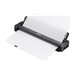 Ce guide papier se clipse facilement sur votre imprimante PocketJet pour faciliter l'alimentation en feuilles individuelles. La partie supérieure se replie pour révéler les guides de largeur réglable qui s'adaptent aux formats de papier ou d'étiquettes souhaités et permettent une alimentation et une impression droites. Rabattez la partie supérieure pour faciliter la manipulation, le transport et le stockage. La conception de l'imprimante vous permet d'accéder pleinement aux ports USB et d'alimentation situés sur le côté de l'imprimante, ainsi qu'aux boutons d'alimentation et de chargement du papier situés sur le dessus.