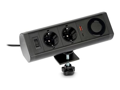Coupe-circuit - USB-C, USB-A, chargeur sans fil - 100-250 V - 2200 Watt - entrée : Type F/E - connecteurs de sortie : 2 - 1.35 m cordon - noir