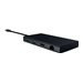 La station d'accueil Razer est conçue pour améliorer la connectivité et les performances grâce à un format compact et un câble USB-C intégré de 20 cm. Elle prend en charge diverses interfaces, notamment HDMI, Gigabit Ethernet et plusieurs ports USB, ce qui en fait une solution polyvalente pour les configurations domestiques et professionnelles. Avec sa structure en aluminium de haute qualité, cette station d'accueil s'intègre parfaitement dans les environnements technologiques modernes. Grâce à la technologie USB-C Power Delivery, qui permet de fournir jusqu'à 85 W de puissance, les utilisateurs peuvent recharger leurs appareils tout en profitant d'un transfert de données fluide et d'une sortie vidéo en résolution 4K avec un taux de rafraîchissement de 60 Hz.