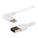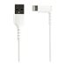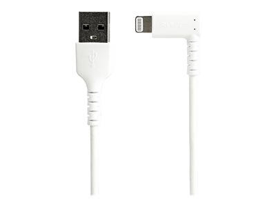 Ce câble coudé USB vers Lightning résiste aux exigences de chargement et de synchronisation de vos appareils mobiles. Testé pour résister à l''usure, le connecteur coudé du câble Lightning vous permet d''accéder facilement à votre appareil mobile, même pendant le chargement.Construit pour un usage quotidienGrâce au renforcement en fibre aramide Kevlar , le câble Lightning durable est à l''abri des contraintes dues aux flexions et torsions fréquentes, ce qui permet au câble de fléchir sans s''étirer excessivement.Caractéristiques principales du câbleLa fibre d''aramide ajoute résistance et durabilité au câbleLes conducteurs isolés réduisent la friction et offrent plus de flexibilitéProtection contre les interférences électromagnétiques (EMI) avec une feuille d''aluminium-mylar à blindage tresséLa gaine du câble en TPE (élastomère thermoplastique) est plus souple et plus flexible qu''un câble en PVC standard et respecte l''environnementAllègement des contraintes de flexionConstruit pour empêcher le connecteur de se séparer de la gaine. Le moulage réducteur de tension extra-long est testé pour résister à plus de 10 000 cycles de pliage à un angle de 180°.Principales caractéristiques des connecteursLe connecteur Lightning fournit 12W pour charger vos appareils iOSUn blindage métallique protège le circuit imprimé contre les interférences électromagnétiques et renforce le point de connexionLa réduction de traction a été testée pour tolérer plus de 10 000 cycles de flexion à un angle de 180°.Le câble RUSBLTMM2MWR Lightning est certifié par Apple MFi et bénéficie d''une garantie de 2 ans de StarTech.com.Note : DuPont et Kevlar sont des marques commerciales ou des marques déposées de E.I. du Pont de Nemours and Company.