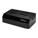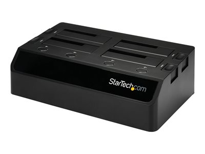 La station d'accueil HDD/SSD SATA 2,5/3,5 pouces SDOCK4U33 permet de brancher et d'échanger simultanément des disques de votre PC ou de votre ordinateur portable au moyen d'un seul port USB.Tirez le maximum de vos lecteurs à état solide et hybrides SATA III (Gb/s) grâce à cette station d'accueil améliorée pour disques durs UASP (USB Attached SCSI Protocol). Avec une performance jusqu'à 70 % plus rapide que l'USB 3.0 traditionnel lorsqu'il est couplé à un contrôleur hôte UASP, l'UASP assure une performance élevée en réduisant les ralentissements. Pour en savoir plus, consultez les résultats de test UASP ci-dessous.Cette station d'accueil pour disque dur est dotée de connecteurs SATA alimentés de façon indépendante pour chaque disque afin de pouvoir utiliser chaque disque séparément. Cette façon de faire vous donne toute la liberté pour échanger à chaud un disque tout en transférant des données vers un autre disque, ce qui vous permet d'économiser beaucoup de temps.Par ailleurs, les ventilateurs intégrés permettent à vos disques de fonctionner sans chauffer, ce qui assure une performance optimale et évite les pannes de disque prématurées.L'utilité de cette station d'accueil de disques durs peut être augmentée grâce à notre [%product id="SAT2IDEADP" text="adaptateur de disque dur SATA vers IDE"%] (SAT2IDEADP), qui vous permet d'utiliser tout disque dur IDE 2,5 ou 3,5 pouces dans une station d'accueil de disque dur SATA.Pour assurer la compatibilité avec votre système informatique, le modèle SDOCK4U33 prend en charge les principaux systèmes d'exploitation, dont Microsoft Windows (8/7/Vista/XP/Server 2008/Server 2003), Apple OSX (10.9/10.8/10.7/10.6), Linux et Google Chrome OS .La station SDOCK4U33 bénéficie de la garantie StarTech.com de 2 ans et de l'assistance technique à vie gratuite.Rendement amélioré grâce à UASPUASP est pris en charge dans Windows 8, Mac OSX (10.8 ou postérieur) et Linux. Les tests démontrent que la prise en charge UASP donne une vitesse de lecture de 70 % supérieure et une vitesse d'écriture de 40 % supérieure à l'USB 3.0 traditionnel à la capacité maximale.Dans les mêmes conditions, UASP affiche une réduction de 80 % des ressources exigées du processeur.Le test a été effectué avec un système Intel Ivy Bridge, un boîtier StarTech.com avec UASP et un lecteur à état solide SATA III.