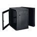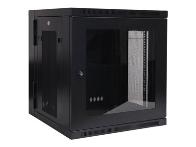Petite armoire rack à montage mural, profondeur de commutateur et profil compact 12U SmartRack à fenêtre en acrylique transparent et charnières dorsales.