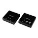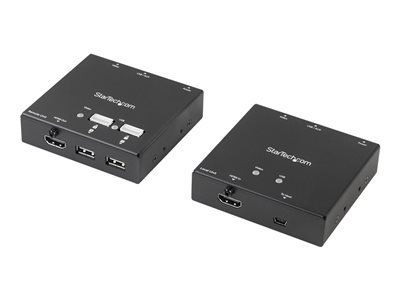 Ce kit d'extendeurs HDMI vous permet de transmettre votre source vidéo HD 1080p vers votre écran HDMI distant à une distance pouvant aller jusqu'à 50 m au moyen de câbles CAT6 blindés. Cet extendeur comporte un hub USB 2.0 à 4 ports intégré, qui vous permet aussi de connecter quatre périphériques USB distants sur le site de votre écran.Une qualité d'image remarquableGrâce à cet extendeur HDMI, vous pouvez maintenir la qualité de votre signal vidéo haute définition ainsi que de votre audio numérique 7.1, même à une distance de 50 m de votre appareil source. Cet extendeur prend en charge les résolutions jusqu'à 1920x1200 ou 1080p - idéal pour captiver l'attention de votre audience dans des applications d'affichage numérique distantes dans des hôpitaux ou des centres commerciaux.Intégration USB distante sans souciCe hub USB 2.0 à 4 ports intégré vous permet de vous connecter, d'accéder ou de contrôler à distance jusqu'à quatre périphériques USB situés à l'emplacement de votre écran distant - idéal pour les clés USB, imprimantes, scanners, disques durs externes et périphériques E/S. L'extension USB distante vous permet également de contrôler à distance votre appareil source, ce qui est idéal pour ajouter des interfaces tactiles à votre écran sur le marché ou dans des kiosques de vente.Installation et configuration facilesPour une configuration sans souci, l'extendeur HDMI permet une installation plug-and-play facile, sans aucun logiciel ni pilote supplémentaire nécessaire. De plus, l'extendeur transmet les informations EDID contenues dans votre signal HDMI et ajuste automatiquement l'égaliseur vidéo pour que vous n'ayez pas à le configurer manuellement. Le matériel de montage est également inclus pour une installation nette et professionnelle.Remarque : Pour atteindre une performance optimale, cet extendeur doit être utilisé avec un câble CAT6 blindé. Lors de l'utilisation d'un câble CAT6 non blindé, la distance maximale est réduite à 30 m. Lors de l'utilisation d'un câble CAT5, la distance maximale est réduite à 15 m.Le modèle ST121USBHD bénéficie de la garantie StarTech.com de 2 ans et de l'assistance technique à vie gratuite.