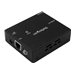 Ce kit d'extendeur vidéo multi-entrées utilise la technologie HDBaseT pour étendre vos signaux vidéo jusqu'à 70 mètres avec un seul câble CAT5e ou CAT6. Il intègre un commutateur vidéo vous permettant de choisir la source vidéo émise entre quatre sources vidéo indépendantes (2 sources HDMI, 1 source VGA et 1 source DisplayPort). L'extendeur vidéo prend en charge les résolutions vidéo Ultra HD 4K et Full HD 1080p, avec une prise en charge de l'audio 7.1 numérique associé.Opération multi-interfaces homogène grâce à dispositif deux-en-un : switch et extendeurCet extendeur HDBaseT intègre un commutateur convertisseur. Vous pouvez ainsi connecter deux sources HDMI ainsi qu'une source vidéo VGA et DisplayPort au même écran HDMI à distance sans recourir à des adaptateurs ou scalers supplémentaires ou à un commutateur vidéo séparé.Grâce à la prise en charge de plusieurs sources vidéo et de HDBaseT, cet extendeur est la solution idéale pour ajouter un grand écran à votre salle de conférence ou salle de classe, permettant ainsi aux ordinateurs portables BYOD (en français " Apportez Votre Équipement personnel de Communication " ou AVEC) dotés de sorties HDMI, DisplayPort ou VGA de partager leur contenu avec la classe.Contrôle sans efforts grâce à une commutation automatique ou prioritaireLe commutateur et étendeur garantit une opération simplifiée grâce à deux modes de commutation automatique différents : la commutation à détection automatique, qui détecte et sélectionne un nouvel appareil connecté, ou la sélection prioritaire, qui vous permet de choisir le port à activer par défaut pour la commutation automatique.Le kit d'extendeur vidéo multi-entrées est l'outil idéal pour les applications d'affichage numérique dans lesquelles un commutateur automatique peut remplacer une source défaillante par une entrée secondaire afin d'éviter des interruptions vidéo embarrassantes. De plus, la fonctionnalité HDBaseT intégrée vous permet de connecter un écran d'affichage numérique distant afin de réduire les points de défaillance.Intégration simplifiée à votre infrastructure existanteLe kit étend votre signal vidéo sur un câble unique contrairement à certains systèmes d'extension qui nécessitent deux câbles et offrent une prise en charge audio minimale. L'extension de votre vidéo avec un seul câble réduit les risques de défaillances potentielles et réduit également le coût de votre câblage.Grâce aux câbles CAT5e, CAT6 ou CAT7 standard, l'extension HDBaseT est compatible avec l'infrastructure Ethernet existante déjà intégrée aux grands bâtiments comme les centres commerciaux, stades, écoles et hôpitaux, ce qui en fait une solution idéale pour déployer un affichage numérique.Une qualité d'image 4K remarquable à une distance impressionnanteAvec des câbles HDMI de haute qualité dont la dégradation du signal commence à 9,1 m, il peut se révéler difficile de conserver l'éclat de la vidéo 4K, même à de faibles distances. Pourtant, avec HDBaseT vous serez surpris de voir à quel point votre qualité d'image Ultra HD, quatre fois supérieure à la résolution de 1080p haute définition, reste tout aussi éclatante, même à 40 m de votre source vidéo.Même si vous n'utilisez pas le 4K, HDBaseT prend en charge la résolution de 1080p haute définition et les résolutions inférieures à des distances encore supérieures, jusqu'à 70,1 m de votre source. Vous pouvez donc rester serein, car cet extendeur fonctionnera parfaitement avec n'importe quelle source vidéo et n'importe quel écran HDMI.Qu'est-ce que HDBaseT ?HDBaseT est une norme de connectivité sans latence qui révolutionne la diffusion HDMI. HDBaseT utilise une méthode de modulation avancée qui vous permet de distribuer de l'audio et de la vidéo HDMI non compressés en même temps que des signaux supplémentaires, via un seul câble Ethernet. Avec une polyvalence supérieure aux extendeurs HDMI traditionnelles et des distances supérieures aux câbles HDMI seuls, HDBaseT est le choix qui s'impos.