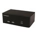 Ce commutateur KVM USB vous permet de brancher deux ordinateurs comportant chacun deux sorties VGA à un poste de travail à deux écrans. Vous pouvez basculer la station de travail entre les ordinateurs, ainsi que deux périphériques USB, des haut-parleurs 3,5 mm et un microphone. Optimisez votre productivité avec deux sorties vidéo Ce commutateur KVM, qui prend en charge deux sorties vidéos VGA et deux ordinateurs, poussera votre productivité au maximum. Non seulement vous accéderez à plusieurs ordinateurs, mais vous pourrez utiliser deux écrans VGA pour diffuser sur chacun d'entre eux du contenu indépendant afin d'augmenter votre productivité tout en profitant d'un fonctionnement multitâche. Le port VGA prend en charge des résolutions jusqu'à 1920 x 1200, pour obtenir une zone d'affichage maximum. Accès multi-système Ce commutateur KVM propose deux sorties vidéo, la prise en charge du clavier et de la souris, ainsi qu'un hub USB à 2 ports permettant d'ajouter deux périphériques de plus. C'est dire s'il est parfait pour accéder à deux systèmes distincts à partir du même poste de travail. Parce qu'il prend en charge votre poste de travail et deux périphériques supplémentaires, ce KVM est idéal pour le contrôle serveur, ce qui simplifie l'accès à de multiples systèmes informatiques. Utilisation pratique Ce commutateur KVM 2 ports garantit un fonctionnement sans effort grâce à la commande intuitive par raccourcis claviers. Cette solution simple mais complète pour passer d'un ordinateur connecté à l'autre s'utilise également en mode manuel grâce aux boutons d'accès facile situé sur le devant. Le modèle SV231DVGAU2A bénéficie de la garantie StarTech.com de 2 ans et de l'assistance technique à vie gratuite.
