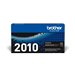 Vous devrez sans doute vous réapprovisionner plus souvent en cartouches noires, puisque vous utilisez plus d'encre noire que d'encre couleur. Capable d'imprimer 1 000 pages, ce consommable Brother original vous garantit de conserver les performances optimales de votre imprimante. Lorsque vient le moment de remplacer votre toner, comptez sur la cartouche TN-2010 de Brother pour garantir la précision de votre imprimante et obtenir des impressions nettes et claires.Bien qu'il soit tentant d'acheter des consommables non originaux moins chers, les recharges et cartouches de toner autres que Brother affectent non seulement la qualité de vos impressions mais peuvent aussi causer des dommages à votre imprimante sur le long terme.Cette cartouche de toner noire TN-2010 originale conserve votre machine en parfait état, tout en vous garantissant un meilleur rapport qualité-prix sur le long terme et des résultats impressionnants, à chaque impression.