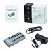 Le Concentrateur Charging HUB vous offre 7 ports USB 3.0 avec la fonction Plug & Play, ainsi qu'avec la recharge USB standard - c'est que le Concentrateur Charging HUB est capable de reconnaître automatiquement le branchement d'un périphérique qui doit être rechargé par l'intermédiaire de l'USB. Le Concentrateur Charging HUB dispose de 7 ports USB 3.0, ce qui vous rend possible de faire recharger jusqu'à 7 périphériques en même temps. L'interface USB 3.0 est particulièrement importante pour des transmissions des donnés de cartes mémoire et disques mémoire flash USB 3.0, chez lesquels la haute vitesse de transmission est mise en valeur. Un adaptateur d'alimentation externe, qui se trouve joint dans emballage, vous assurera une grande stabilité de la recharge par l'intermédiaire des ports USB, ainsi que du rendement de votre Concentrateur Charging HUB. Le rendement de la recharge de ce Concentrateur Charging HUB est jusqu'à 10 W sur un port.Le Concentrateur Charging HUB n'a pas besoin d'installation des pilotes informatiques, vous n'avez qu'à le brancher à l'aide du câble USB sur votre ordinateur et, aussitôt après, vous pouvez l'utiliser tout de suite. Le Concentrateur Charging HUB dispose d'une protection incorporée contre surtensions pour protéger votre ordinateur en cas de court-circuit qui se produise sur des périphériques. Il est, bien sûr, compatible réversiblement avec l'USB 2.0. / 1.1.L'installation du Concentrateur Charging HUB se déroule automatiquement du système sans besoin d'avoir les pilotes informatiques. Veuillez brancher, s'il vous plaît, le connecteur de l'adaptateur d'alimentation sur le Concentrateur Charging HUB et, après, veuillez connecter l'adaptateur à la prise de courant 230 V. Dans la suite, veuillez brancher le Concentrateur Charging HUB par l'intermédiaire du câble USB sur le port USB qui se trouve désoccupé (l'USB standard 3.0, 2.0 ou 1.1) à votre ordinateur portable / ordinateur de bureau (PC) et veuillez suivre les instructions qui s'afficheront sur l'écran d'affichage. Votre Concentrateur Charging HUB sera installé et affiché dans le Gestionnaire de périphérique en qualité de " Concentrateur Charging HUB USB général " et " Concentrateur Charging HUB USB général SuperSpeed ".