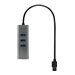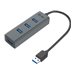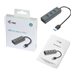 i-tec Concentrateur HUB Metal avec ports USB 3.0 votre attention en première vue par son très élégant design métallique. Il s'agit des accessoires idéals qui sont capables de résoudre facilement la pénurie des ports USB sur chaque ordinateur portable, ultrabook ou ordinateur personnel (PC), tout en offrant la meilleure solution pour tous ceux qui ont besoin de toujours brancher et débrancher leurs périphériques USB favoris, tels que des disques flash, téléphones portables, tablettes tactiles, appareils photo numériques, lecteurs de MP3, imprimantes, etc.Ce Concentrateur HUB offre quatre ports USB 3.0 avec la fonction Plug & Play. Un grand avantage de ce produit consiste dans le placement des ports, tout en assurant assez de l'espace pour la connexion de même grands périphériques. L'interface USB 3.0 est particulièrement importante pour des transmissions des donnés des cartes mémoire et des disques flash USB 3.0, chez lesquelles la haute vitesse de transmission est mise en valeur.Le Concentrateur HUB est alimenté du bus informatique USB, n'ayant pas besoin d'installation des pilotes informatiques. Vous n'avez qu'à le brancher à l'aide du câble USB sur votre ordinateur et, dans la suite, vous pouvez l'utiliser immédiatement. Le Concentrateur HUB dispose d'une protection incorporée contre surtensions pour protéger votre ordinateur en cas de court-circuit qui se puisse produire sur des périphériques. Il est, bien sûr, compatible réversiblement avec l'USB 2.0 / 1.1. Le Concentrateur HUB est fourni sans l'adaptateur d'alimentation, dont on n'a pas besoin pour l'utilisation de la majorité des périphériques.