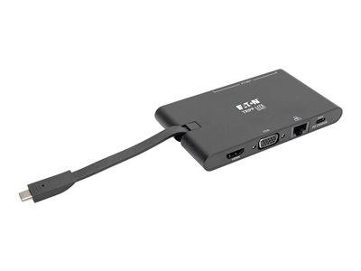 Interfaces | | 1 x USB-C avec livraison de puissance - USB-C de 24 broches (alimentation uniquement) 1 x affichage / vidéo - sortie VGA - 15 broches HD D-Sub (HD-15) 1 x audio / vidéo - sortie HDMI - HDMI de 19 broches de type A 1 x réseau - 10Base-T/100Base-TX/1000Base-T - RJ-45 2 x SuperSpeed USB 3.0 - USB 9 broches type A 1 x USB-C 3.1 / Thunderbolt 3 - 24 pin USB-C