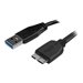Votre câble USB 3.0 habituel soulève ou appuie contre votre disque dur externe, ce qui le déplace sur votre bureau ? Etes-vous obligé d'organiser votre bureau en fonction du positionnement capricieux de votre câble ?Le modèle USB3AUB3MS est fait de fils USB slim, facilitant l'installation de vos appareils USB 3.0 et vous permettant de les placer en fonction de vos besoins dans votre espace de travail. De plus, le moulage fin du connecteur Micro USB en fait un excellent câble, convenant également aux appareils mobiles USB 3.0. Vous pouvez le brancher à votre appareil sans devoir le sortir de son étui à chaque chargement et synchronisation.Positionnez vos appareils USB 3.0 à votre guiseOrganisez votre bureau et votre espace de travail selon vos besoins. Ce câble léger et durable fait environ la moitié de l'épaisseur d'un câble USB 3.0 classique, ce qui vous permet de placer vos appareils comme bon vous semble, avec un encombrement minime. Ce câble flexible et fin réduit également la tension exercée au niveau de la connexion et prévient les dommages du port USB 3.0 de votre appareil.Chargez et synchronisez vos appareils mobiles USB 3.0Offre une puissance de charge optimale, sans perte de temps, même à des distances allant jusqu'à 3 mètres de votre chargeur.Idéal pour vous connecter à vos appareils de bureau, ce câble constitue la solution parfaite pour charger et synchroniser vos téléphones et vos tablettes USB 3.0 Micro B.Ce long câble de charge contourne les contraintes de distance et vous permet de rester connecté même lorsque vous prenez des notes dans une salle de conférence, consultez votre messagerie électronique dans une chambre d'hôtel ou lisez dans un café.Connectez-vous facilement à vos appareils mobilesVous n'aurez plus à sortir votre téléphone ou votre tablette de leur étui chaque fois que vous voudrez les charger ou les synchroniser. Le câble est équipé d'un connecteur Micro USB moulé fin, qui se branche dans votre appareil, même lorsqu'il se trouve dans son étui protecteur.Ce câble Micro USB 3.0 bénéficie de la garantie à vie StarTech.com pour une fiabilité assurée.