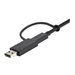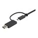 D''une longueur de 1 m, ce câble hybride USB-C vers C, USB 3.2 Gen 2 (10 Gb/s) avec adaptateur USB-A vers C, USB 3.2 Gen 1 (5 Gb/s) vous permet de connecter un périphérique USB Type-C , tel qu''une station d''accueil PC, un disque dur, une tablette ou un périphérique mobile, au port USB-C ou USB-A de votre ordinateur hôte. Ce câble est également compatible avec les ports Thunderbolt 3.Remarque : lorsqu''il est utilisé avec un hôte USB-A, ce câble fonctionne uniquement avec les stations d''accueil prenant en charge DisplayLink.Chargez plus rapidement vos appareils USB Type-CLorsqu''il est utilisé avec une source d''alimentation USB-C compatible PD 3.0, le câble USB-C vers C de 1 mètre prend en charge jusqu''à 100 W (5 A) d''alimentation pour charger une tablette, un smartphone ou un ordinateur portable USB-C ou Thunderbolt 3.Lorsqu''il est associé au câble USB-C vers C, l''adaptateur USB-C vers USB-A prend également en charge jusqu''à 15 W (5 V, 3 A) d''alimentation pour recharger vos appareils à partir d''un chargeur mural USB-A, d''un chargeur de voiture ou d''une batterie externe : il est ainsi idéal pour les personnes en déplacement, afin de bénéficier de connexions simples sans s''encombrer.Connectez vos périphériques USB 3.1Le câble USB-C vers C USB 3.2 Gen 2 offre un débit de données de 10 Gb/s, ce qui vous permet de synchroniser vos périphériques USB Type-C en un rien de temps. Vous pourrez également connecter vos périphériques USB 3 (3.0, 3.1 ou 3.2), comme des boîtiers de disque dur et des stations d''accueil, à votre ordinateur portable USB-C ou TB3.L''adaptateur USB-C vers A, USB 3.2 Gen 1, utilisé avec le câble USB-C vers C, offre un débit de données de 5 Gb/s. Gagnez du temps sur le transfert et la sauvegarde des données de vos périphériques USB-C vers votre hôte USB-A, afin de vous concentrer davantage sur vos projets et vos présentations.Câble de station d''accueil PC hybrideUtilisez ce câble avec votre station d''accueil PC hybride USB-C ou votre hub USB-C pour connecter votre ordinateur portable, votre tablette, votre smartphone ou vos clés USB. Ce câble est également fourni en tant qu''accessoire pour les stations d''accueil PC à deux écrans (4K 60 Hz) hybrides StarTech.com, telles que les modèles DK30C2DPEP et DK30C2DPPD.Le modèle USBCCADP bénéficie de la garantie StarTech.com de 2 ans pour une fiabilité à toute épreuve.