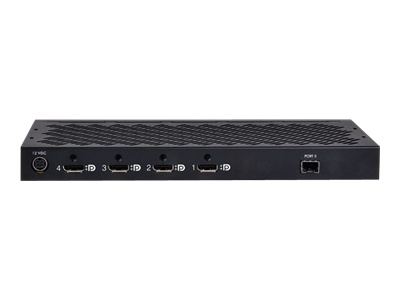 La solution d'extension KVM point à point Matrox Extio F2408 sépare le clavier, la souris et les périphériques audio, ainsi qu'un maximum de 4 écrans du reste de l'ordinateur d'une distance maximale via un câble à fibre optique. La connexion à fibre optique permet la transmission de données brutes décompressées entre le système de l'hôte distant et l'équipement Extio F2408 côté utilisateur, ce qui se traduit par une prise en charge inégalée de la résolution élevée et des performances optimales des stations de travail. Conçu pour les secteurs d'activité nécessitant des graphiques stables, fiables et évolutifs, l'équipement Extio F2408 peut également être développé. Associez-le à l'unité d'extension Extio F2408 facultative pour piloter davantage d'écrans stratégiques, à savoir un maximum de 8 au total, avec une résolution maximale par écran, et tout cela, à partir d'une station de travail, d'un câble à fibre optique et d'un adaptateur.